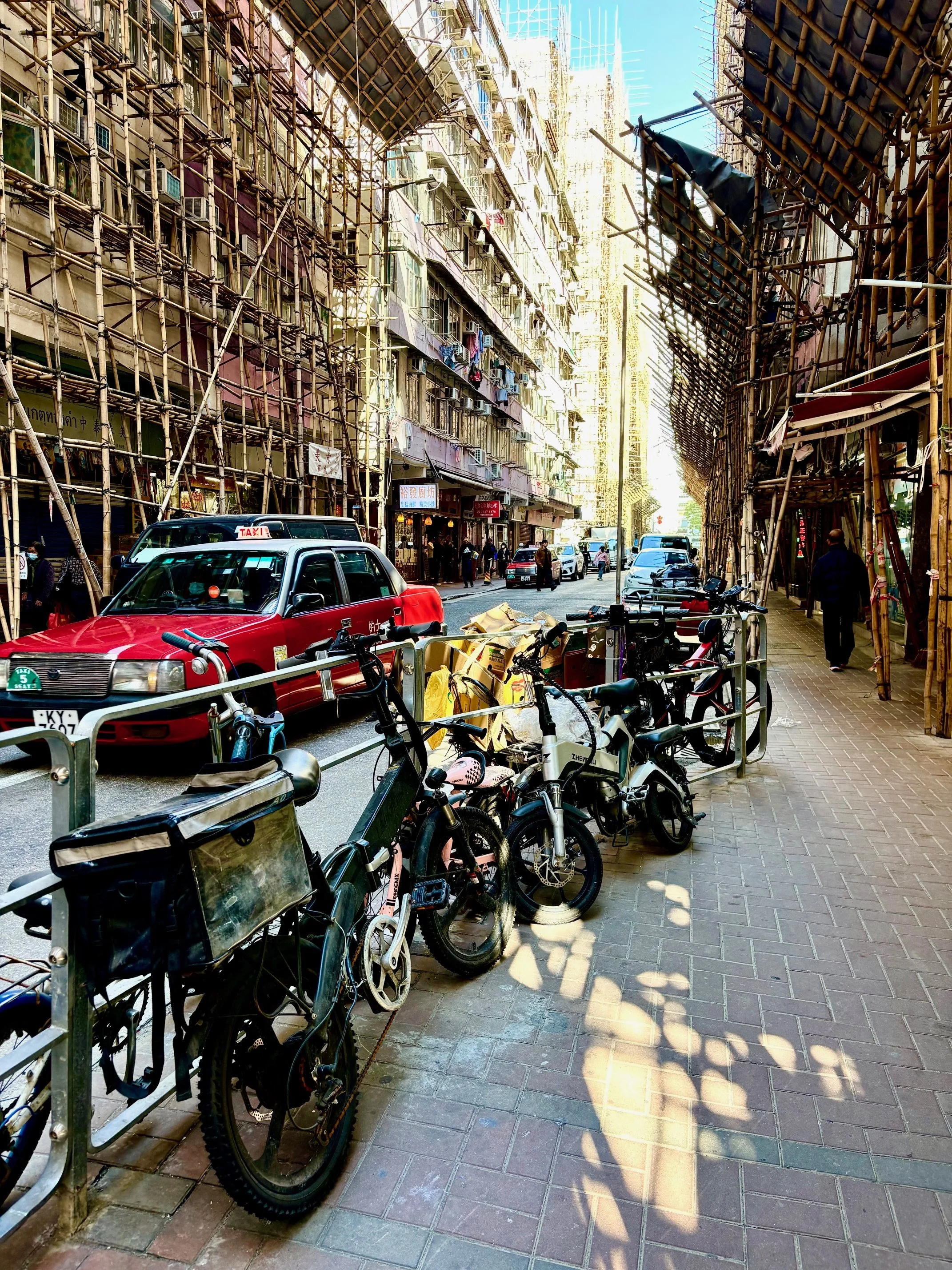 Bamboo scaffolding is everywhere—flexible, fast, vernacular. Recent fires covered by global news sources complicate the romance. What once read as ingenuity now carries unease. Hong Kong asks you to hold both truths at once: the beauty of tradition and the tension of enhanced scrutiny.